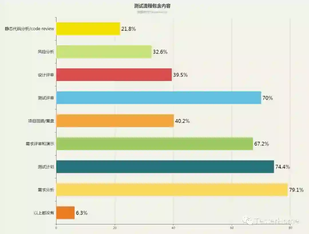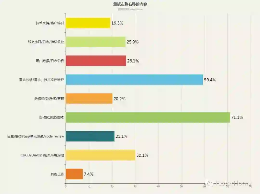 随着行业的发展,测试人员水平越来越高,对质量保障的切入点变得越来越丰富,项目中的测试左移和右移的工作会越来越多,也对测试从业人员带来了更高的要求,通过问卷的调研结果,能看出测试人员在自动化测试和需求文档维护上投入了大量的精力。
