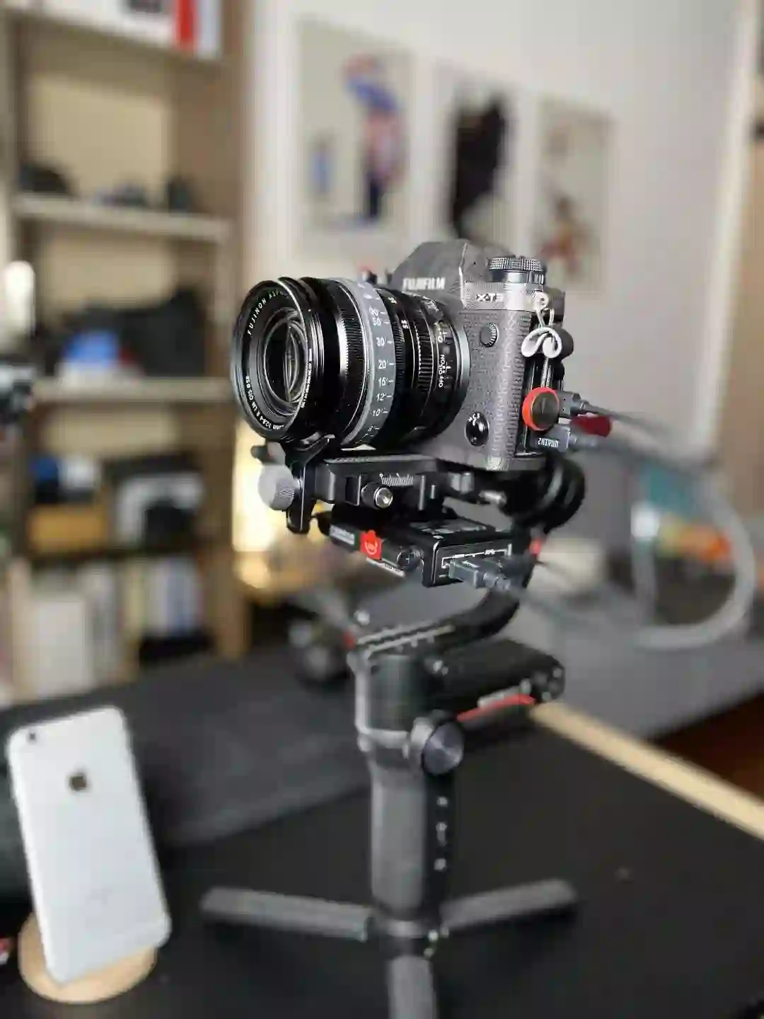由于我使用的是富士 X-T3 相机,作为一款较为小众的相机,虽然它拍摄视频能力不俗,但是受限于相机厂商和稳定器厂商的固件不兼容,市面上大多数的稳定器并不支持对它的线控。而在我把相机和稳定器的固件都更新为最新版本之后,Weebill-S 搭配鳞甲图传给了我一个惊喜:不仅可以实现稳定器上的线控在手机的图传界面也可以实现对于相机的控制,唯一的不足就是不能调节相机参数,但其他功能都能实现。