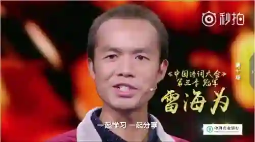 3月26日,《中国诗词大会》第四期播出,雷海为第一次登上央视的舞台。在这场个人追逐赛环节,他以“8题全对”惊艳亮相,却因总分不高遗憾下场。