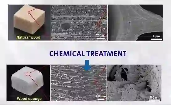 突破性:经化学品处理,剥离半纤维素和木质素而成的木材海绵,可以从水中吸附油脂,吸油量可达到其自身重量的16-46倍,可重复使用多达10次。这种新型海绵在容量、质量和可重复使用性方面超越了现有的所有其他海绵或吸附剂。