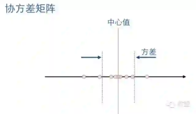 假设我们有一个一维的数据,这个数据每次测量都不同,我们假设服从高斯分布,那么我们可以用均值和方差来表示该数据集,我们将该一维数据集投影到坐标轴上,如下图: