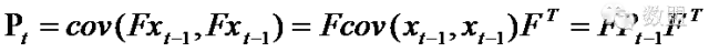 在公式(1)之中,我们已经得到了状态的转移公式,但是由上面可知,二维数据的协方差矩阵对于描述数据的特征是很重要的,那么我们应该如何更新或者说传递我们的二维数据的协方差矩阵呢?假如我们用 P 来表示状态协方差,即