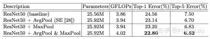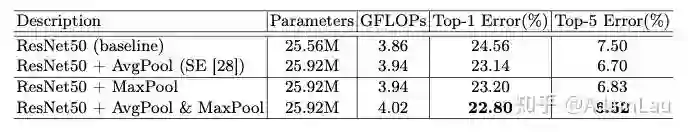 用maxpooling与avgpooling一起比SENet(仅用avgpooling)效果更好。