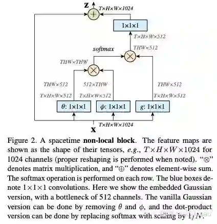 提出的non-local operations通过计算任意两个位置之间的交互直接捕捉远程依赖,而不用局限于相邻点,其相当于构造了一个和特征图谱尺寸一样大的卷积核, 从而可以维持更多信息。
