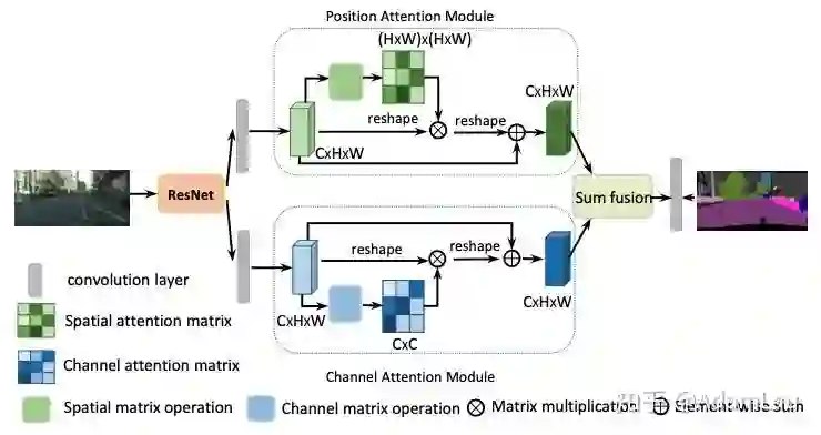 总的来说,DANet网络主要思想是 CBAM 和 non-local 的融合变形。把deep feature map进行spatial-wise self-attention,同时也进行channel-wise self-attetnion,最后将两个结果进行 element-wise sum 融合。