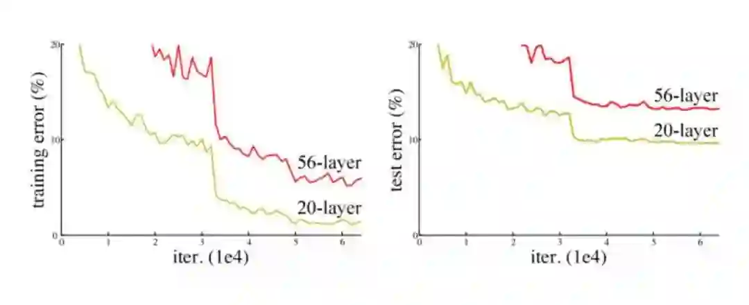 但是,网络的深度提升不能通过层与层的简单堆叠来实现。由于臭名昭著的梯度消失问题,深层网络很难训练。因为梯度反向传播到前面的层,重复相乘可能使梯度无穷小。结果就是,随着网络的层数更深,其性能趋于饱和,甚至开始迅速下降。