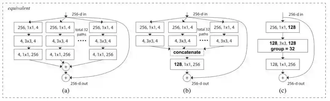 Xie et al. [8] 提出 ResNet 的一种变体 ResNeXt,它具备以下构建块: