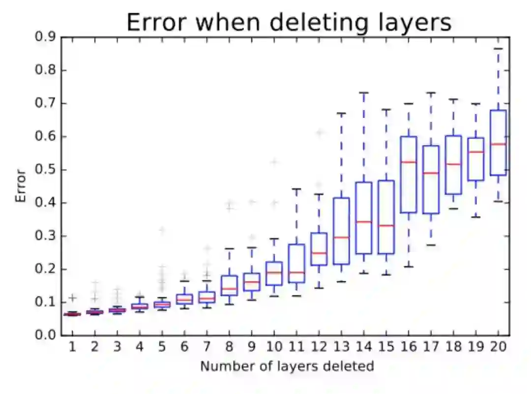 当被删除的层数增加时,误差值随之增长