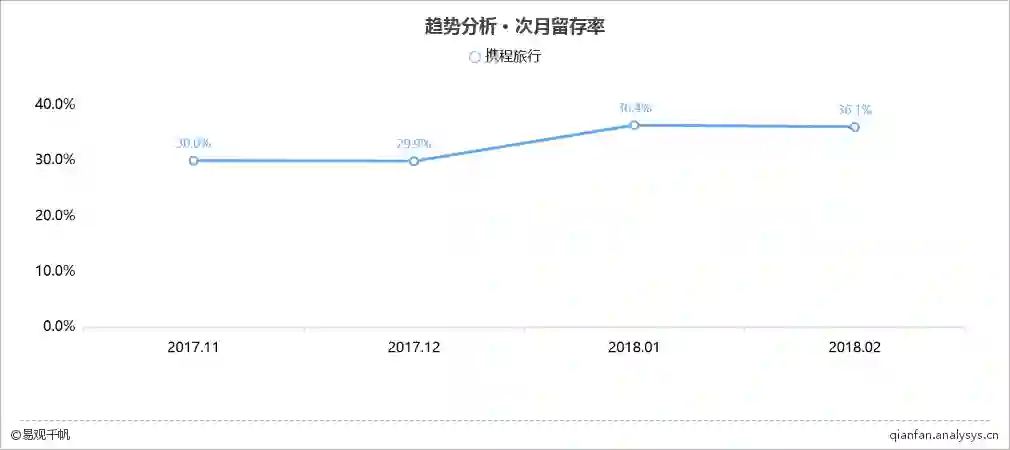 2017年11月-2018年2月携程旅行APP次月留存趋势