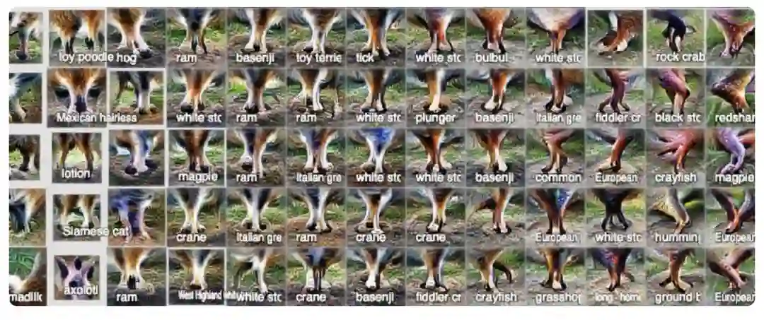 结果是一个特征可视化网格,每个patch都有一个。这向我们展示了网络如何看到输入图像的不同部分。