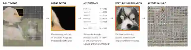 在深入研究Activation Atalas之前,先简要回顾一下如何使用特征可视化使激活向量变得有意义,也就是如何“透过网络的眼睛看”事物。 这种技术将成为Activation Atalas的基础。