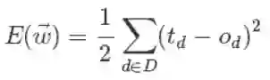 上面公式中D代表了所有的输入实例,或者说是样本,d代表了一个样本实例,od表示感知器的输出,td代表我们预想的输出。