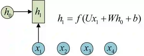 一个箭头就表示对该向量做一次变换。如上图中h0和x1分别有一个箭头连接,就表示对h0和x1各做了一次变换。