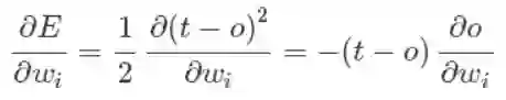 上面公式中的误差是针对于所有训练样本而得到的,而随机梯度下降的思想是根据每个单独的训练样本来更新权值,这样我们上面的梯度公式就变成了: