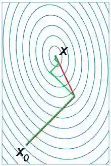 下图为共轭梯度法和梯度下降法搜索最优解的路径对比示意图: