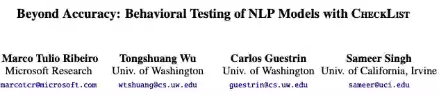 最佳论文:Beyond Accuracy: Behavioral Testing of NLP Models with CheckList.