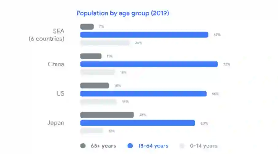 谷歌、淡马锡和贝恩联合发布的《2019年东南亚数字经济报告》显示,现在东南亚有 3.6 亿互联网用户,其中 90% 在移动端。未来 15 年,大约有 1.5 亿人将年满 15 岁,这意味着每年还会有 1000 万年轻人加入移动互联网。