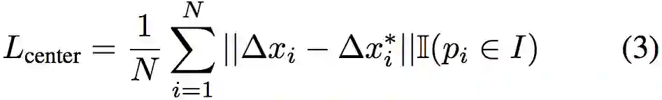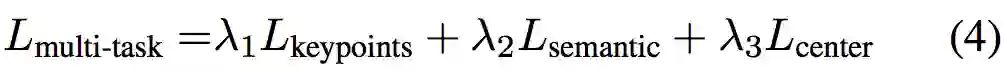 同时,中心点投票模块 M_c 投票出不同物体的中心点,以区分相同语义的不同实例。由于中心点可视为一种特殊的物体关键点,该模块和 M_k 类似,使用L1 loss 进行监督学习: