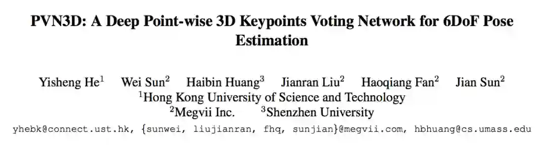 旷视研究院提出一种新颖的基于深度 3D 关键点投票网络的 6DoF 位姿估计算法,其性能在两大公开基准上大幅超越先前所有方法。