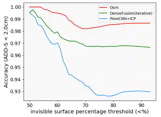 图 4:YCB-Video数据集上不同程度的遮挡下算法的性能曲线