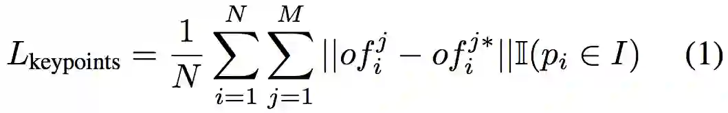 通过这些可见点的坐标和预测的偏移量计算出目标关键点的位置作为投票点。这些投票的点由聚类算法进行聚类以消除离群点的干扰,群集的中心点被选为投票选出的关键点。关键点平移量学习模块 M_k 使用 L1 loss 进行监督:
