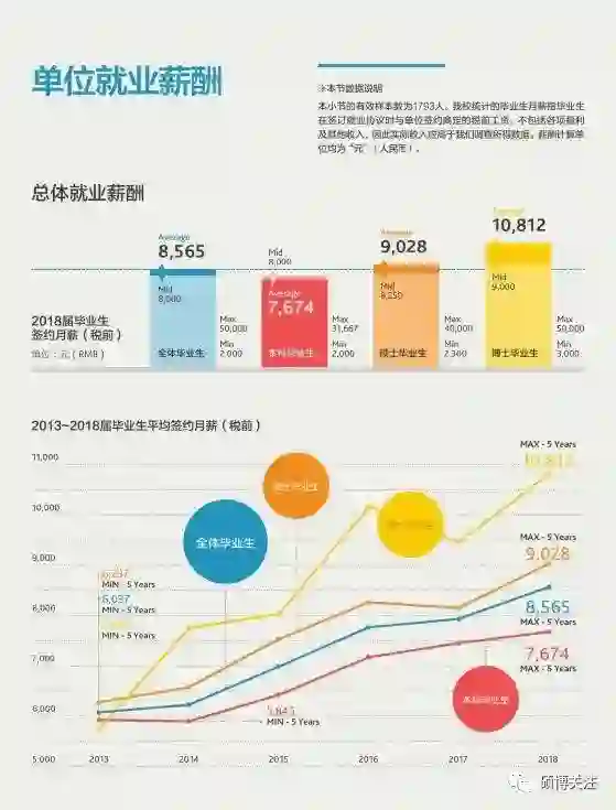 本科生平均期望起薪7759元/月,实际6922.1元/月。研究生平均期望月薪9405元/月,实际8551.4元/月。其中,证券业起薪最高,9931元/月,其次为其他金融业、IT业。
