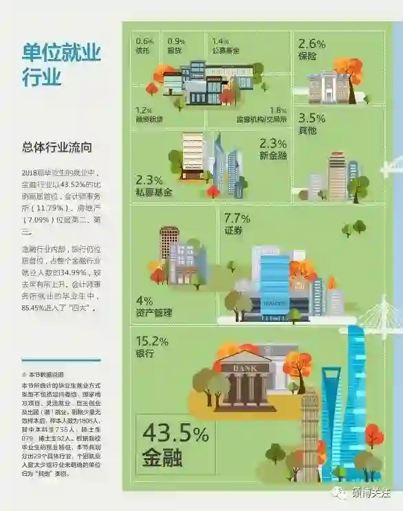 2018年,签约金融业的本科生为30.82%,硕士生为53.26%,金融业是主要的就业去向。
