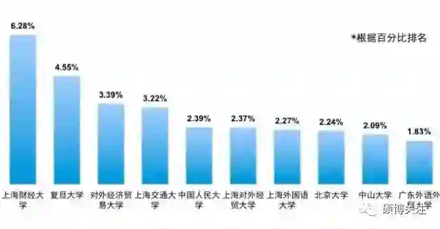 其中上海财经大学更是达到了6.3%的超高比例。这里影响因素有很多,比如所在城市(北上广一线)、专业(财经类)等。