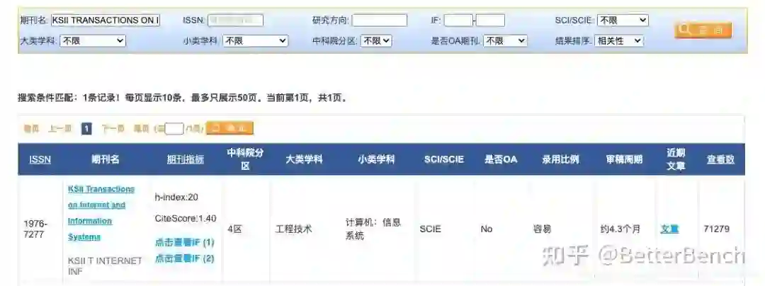 (3)KSII TRANSACTIONS ON INTERNET AND INFORMATION SYSTEMS就是期刊的名称,想要看此期刊的中科院分区。登录Let-Pub网站,搜索这个期刊名称,即可看到。