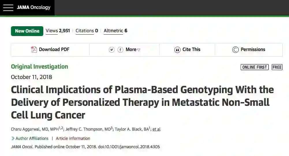 文章共同第一作者Charu Aggarwal表示:“这些发现表明,液体活检增加了检测到的靶向治疗突变数目并改善了患者的预后。结合液体活检对患者侵袭性较小的事实考虑时,在某些情况下,这可能是患者的唯一选择,其临床意义是非常清楚的。”