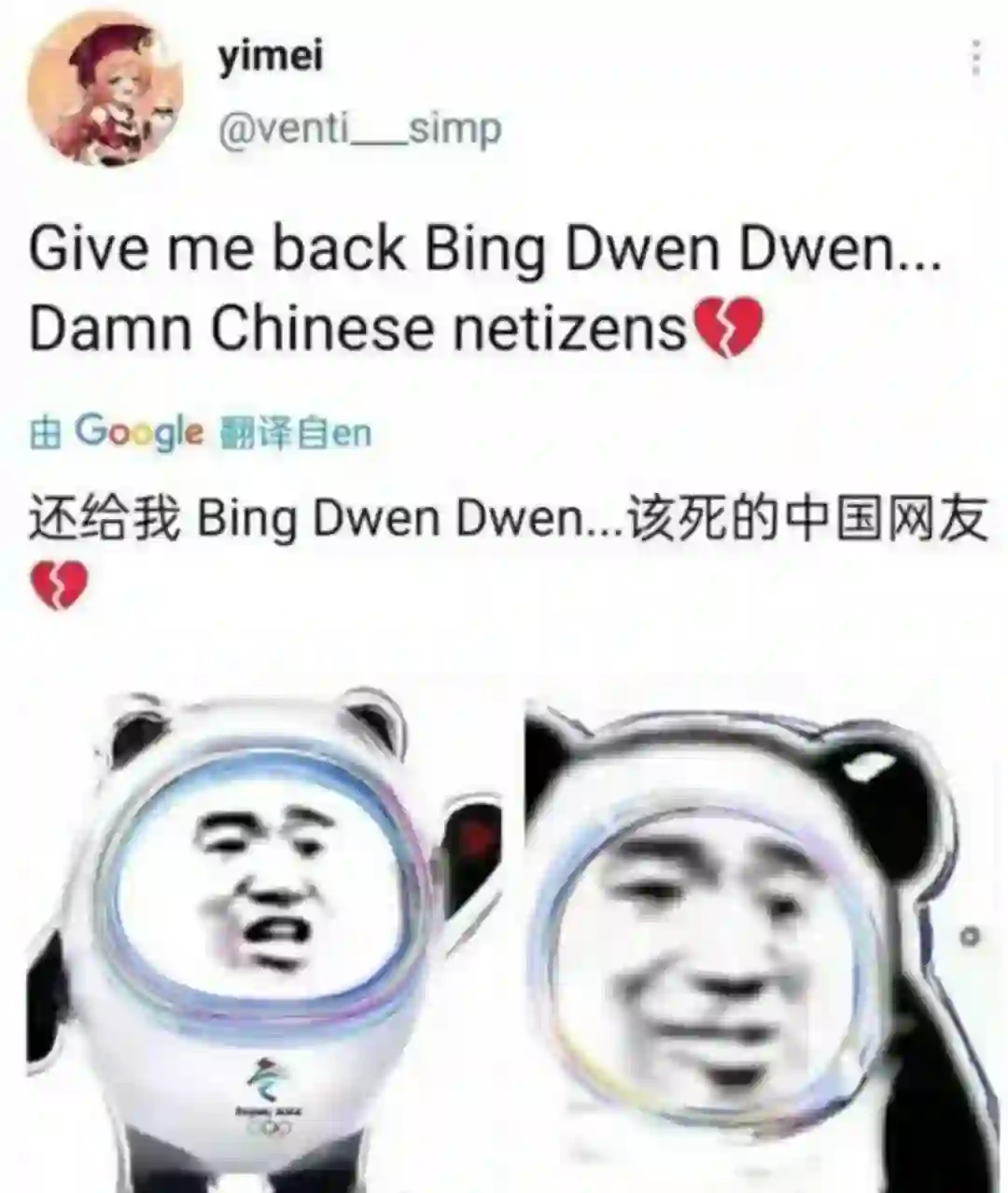 推特上,除了Bing Dwen Dwen相应的专属话题外,不少国外网友开始从微博、小红书等地寻找冰墩墩的内容,反向输出内容,如当头像,熟练使用表情包。