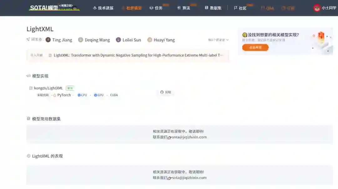 当前 SOTA!平台收录 Light-XML 共 1 个模型实现资源。