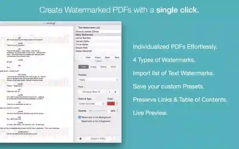 PDF Watermarker 帮你快速在 PDF 文件中批量打上水印,你可以在软件中设置水印的样式、大小和数量。