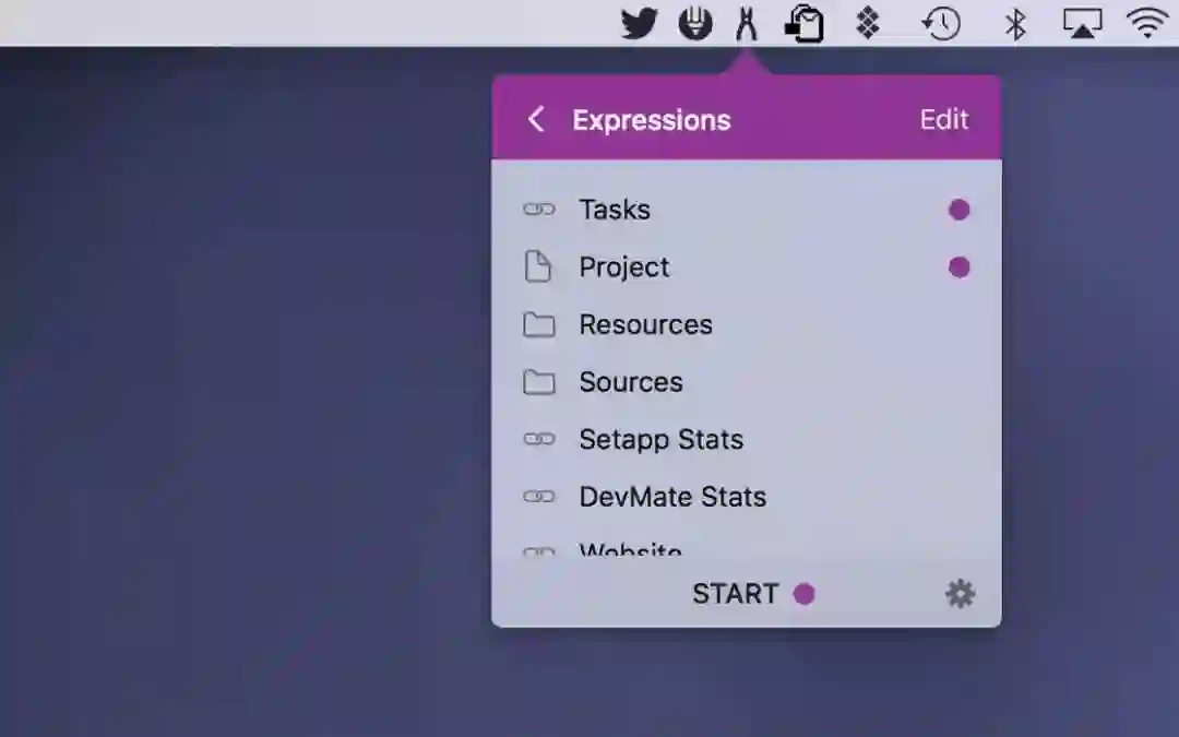 如果你需要经常使用某些重复项目,可以使用 Workspaces 来管理它们。只需要将工作文件、文件夹、应用程序、网站链接等通通拖进 Workspaces 的菜单栏图标,你就可以一键打开所有的项目资料。