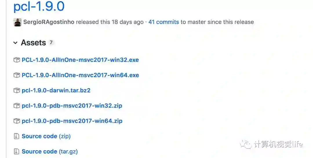 师兄:PCL在Linux下安装有两种方式,一种是安装编译好的库,一种是从源码编译。你看这个是PCL GitHub上的安装包,前面几种是不同环境下的编译好的库了,最后的source code就是源码安装