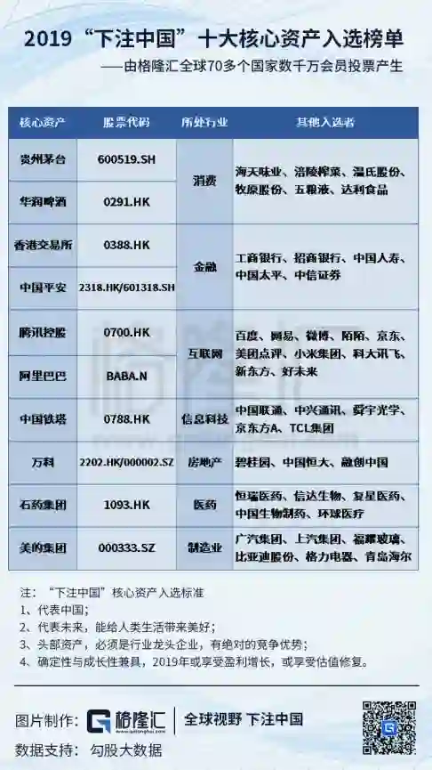 在《寻找中国核心资产,赌国运,正当时!》发出后,各个渠道的会员讨论热烈,收集了近百万的投票反馈信息,隆重推出了:2019下注中国十大核心资产。