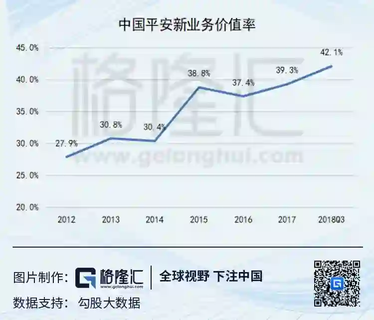 从近年来平安快速增长的保单价值率即可见一斑。2018年三季度报平安的保单价值率达到42.1%,同比提高4个多百分点。