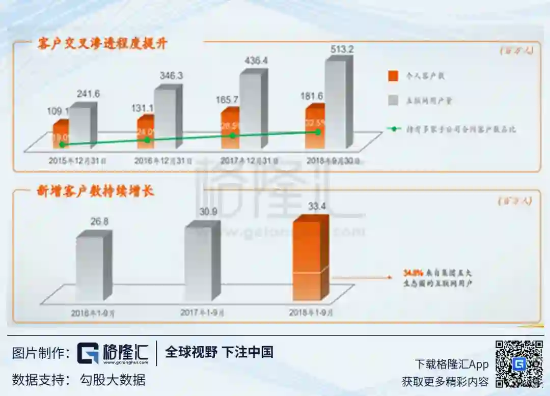 其次,除了大金融板块,科技板块孵化成熟后,对金融板块带来的协同效应也是显著的。截至新增客户中来自互联网的占比提升至34.8%。