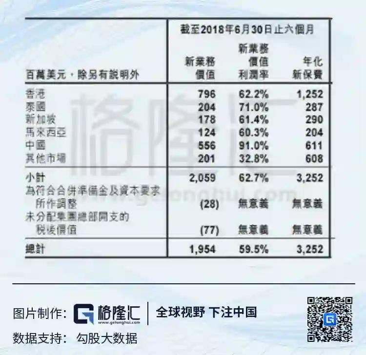 长期保障产品的占比提升,驱动新业务价值率与友邦收敛,从未来看,平安新业务价值率会持续向友邦收敛。下图是友邦2018年中期新业务增长情况,中国地区新业务价值率达到91%。