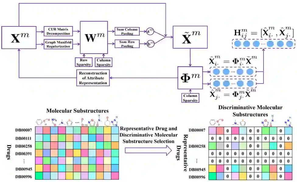 图2:基于矩阵CUR分解和图流形规则化的代表药物和判别性特征选择。