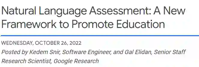 最近Google在官方博客上介绍了一个重要的自然语言理解(NLU)能力,即自然语言评估(Natural Language Assessment, NLA),并讨论了如何能够在教育的背景下有所帮助。