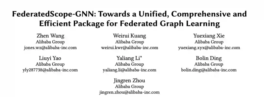 为了更好地满足上述需求,阿里巴巴达摩院智能计算实验室提出并基于联邦学习框架 FederatedScope 实现了针对图学习的库 FederatedScope-GNN,并以此工作形成了本次获奖论文《FederatedScope-GNN: Towards a Unified, Comprehensive and Efficient Package for Federated Graph Learning》。