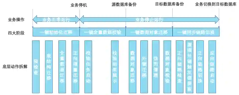 生产库存量、增量式迁移:对于业务连续性要求不高的系统,一般操作一次性存量方式完成数据迁移;对于业务连续性要求高的系统,采取全量 + 增量迁移方式,待增量数据追平后实施切换,仅需在切换时点暂停业务(分钟级)。