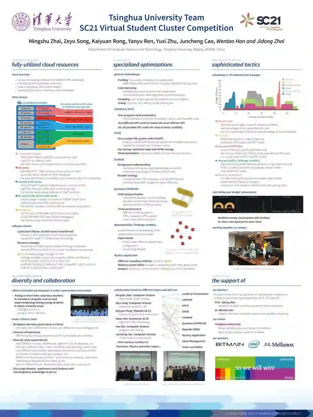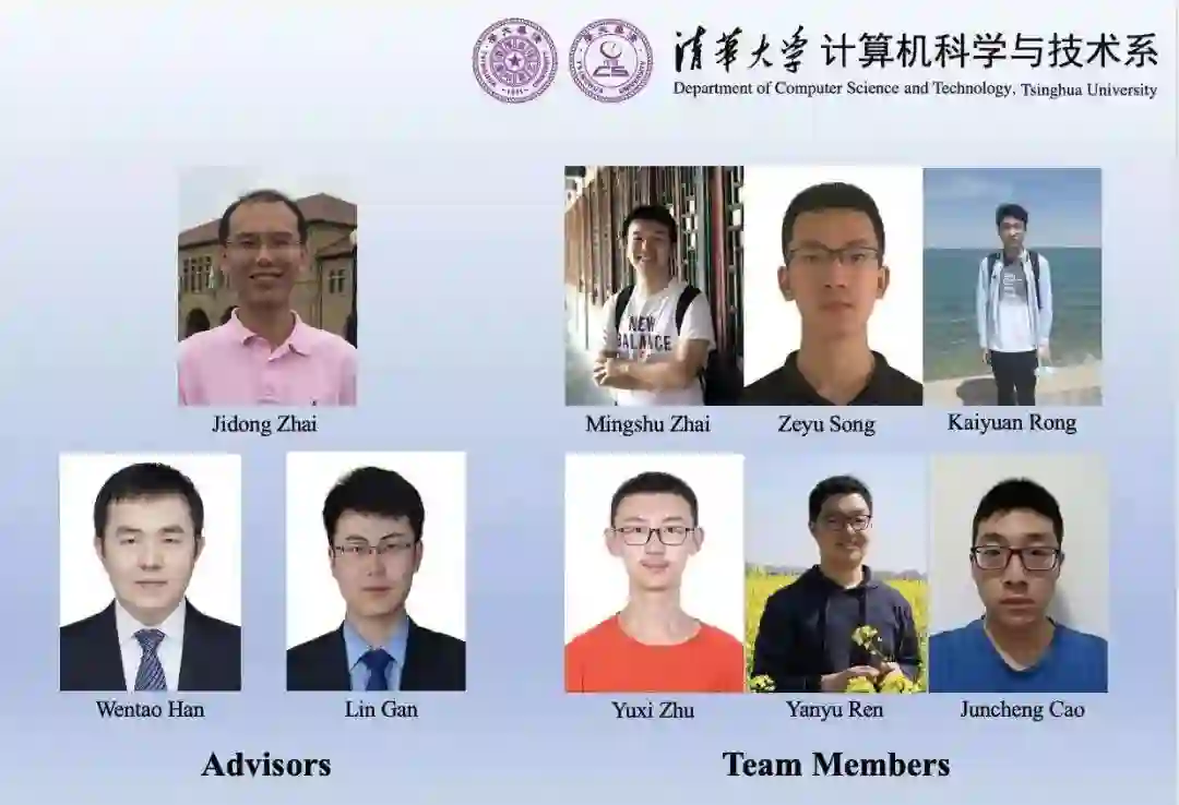 清华大学的队伍由6名来自计算机系的本科生组成:翟明书、宋泽宇、融凯源、任彦羽、朱昱熹、曹隽诚,指导教师为计算机系副教授翟季冬和助理研究员韩文弢。
