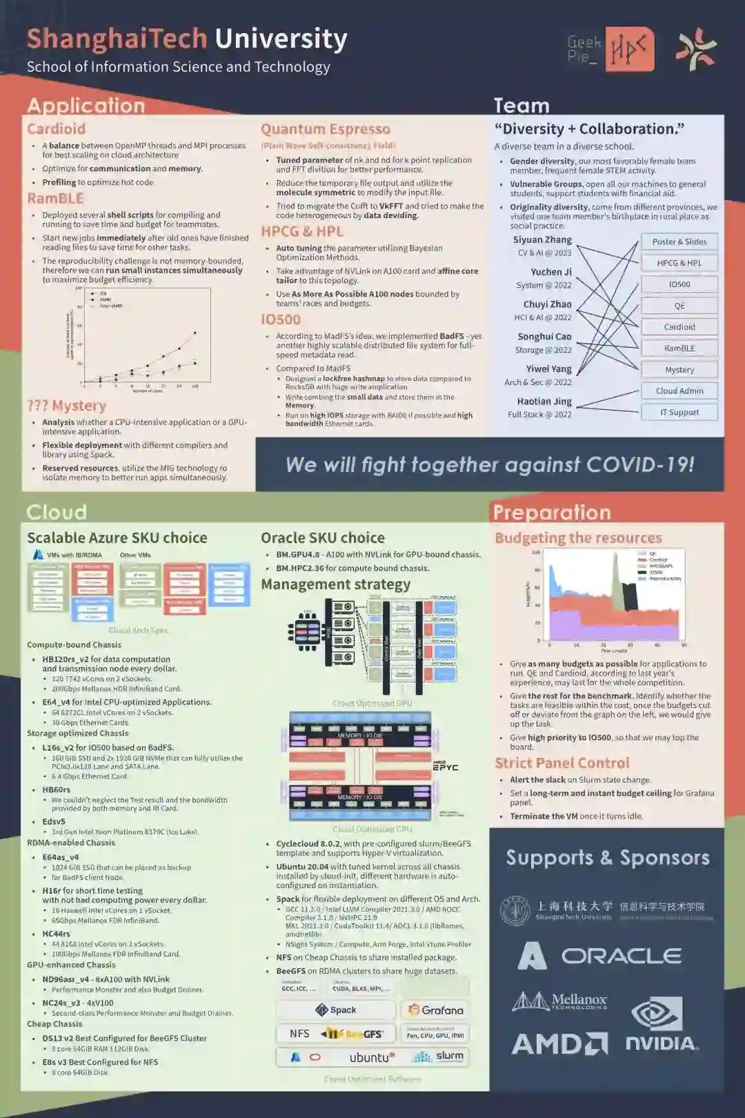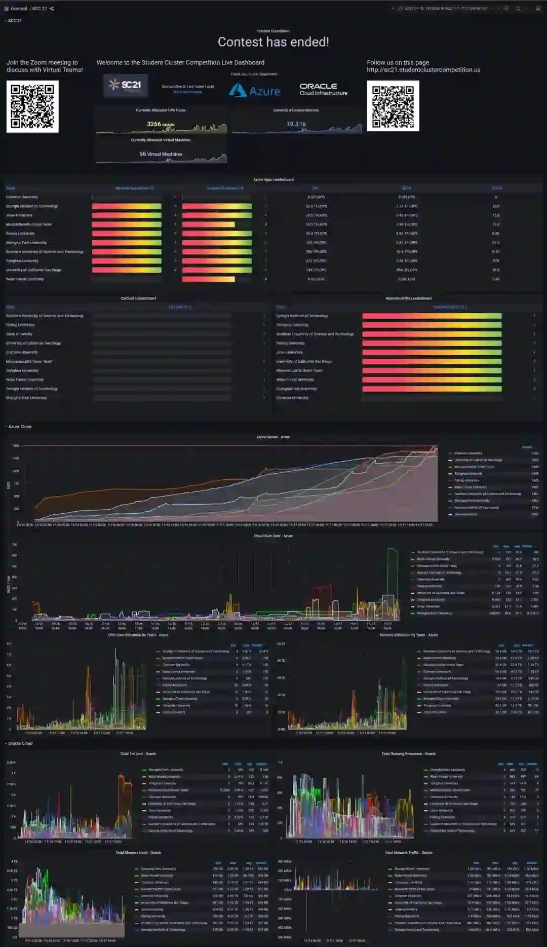 由于疫情的影响,2021年的SC竞赛在线上举行。比赛规则要求各参赛队伍在两个云计算集群上运行应用程序,分别为微软Azure和Oracle云。