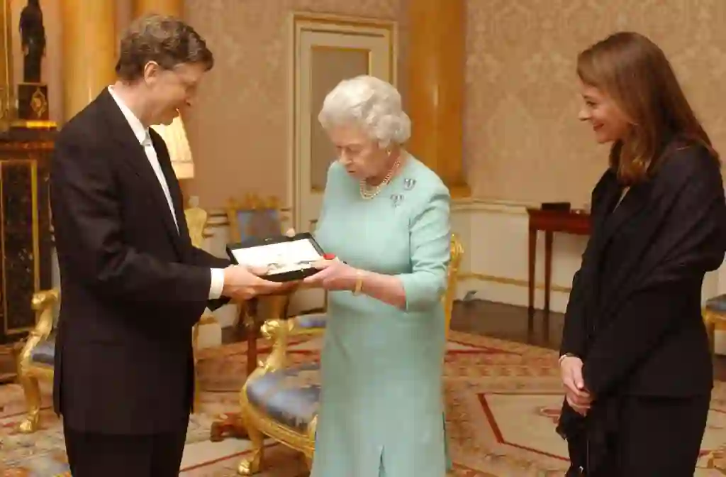 2005年,伊丽莎白二世授予比尔盖茨大英帝国「荣誉骑士」勋章。