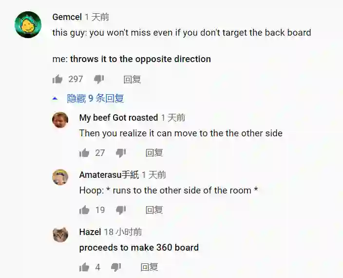 第三版的「百发百中」篮板出来之后,依然有人出来「唱反调」:「我往相反的方向扔你就接不到了吧。」
