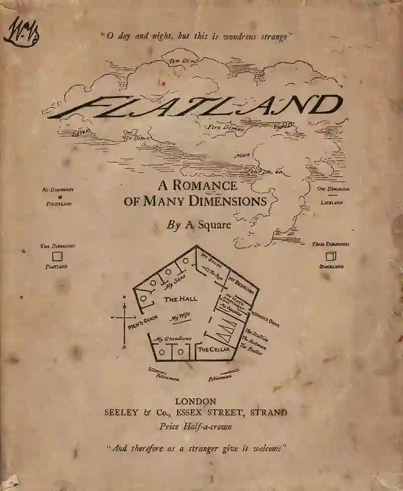 今天文章,我要从一部文学名著开始说起。这部名著就是英国作家艾特温·阿博特的科幻小说《平面国》 “Flatland: A Romance of Many Dimensions” (1884)。它将19世纪维多利亚时代的英国社会描绘为一个等级化的二维世界,由于它较低维的特性,所以无法意识到自己的思想狭隘。