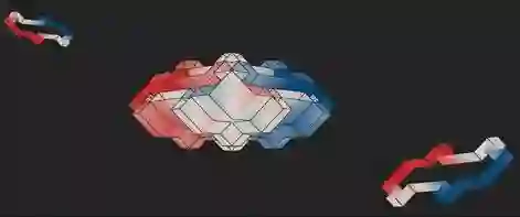 如下图所示:研究四维系统中量子霍尔效应的假想设备。两个二维的霍尔棒(左/右),也就是Klaus von Klitzing 首次测量二维霍尔效应所采用的几何图形,在正交子空间中结合形成四维霍尔系统(中间)。这种四维样本通过将表面上的颜色编码到三维空间中来描述,红色表示正值,蓝色表示负值。