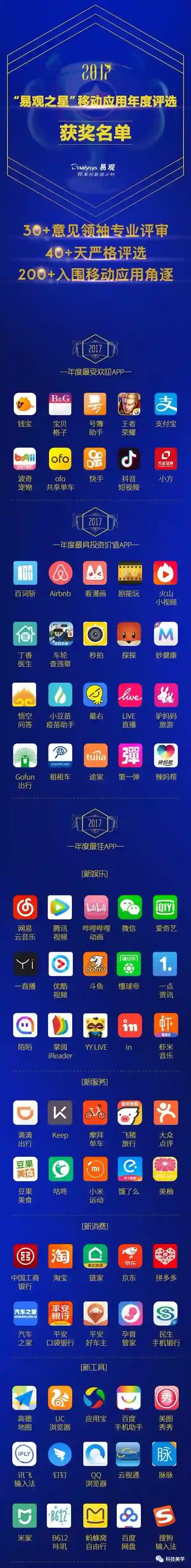 10月27日,中国互联网行业报告权威机构“易观”,公布了2017年“年度最佳APP”、“年度最受欢迎APP”和“年度最具投资价值APP”三项大奖。